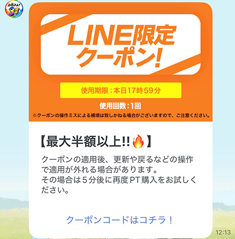 特に初回クーポンは割引額も大きいので、高額入金がおすすめです!