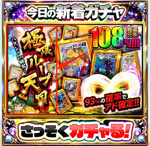 これらのガチャは一般より還元率や当たり枠が豪華で、高ランクになればなるほどアド確定や高額カード入りのガチャも登場しやすくなる仕様となっています。