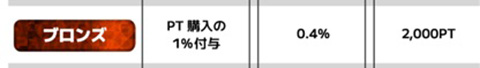 | ブロンズ | +1% | 0.4% | 2,000P |