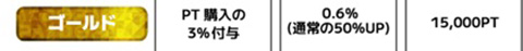 ゴールドランク以上はややハードルが上がってきますが、その分、購入時のポイントはプラス3%、DP付与率は0.6%と、お得度も上がっています。