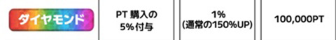 | ダイヤモンド | +5% | 1.0% | 100,000P |