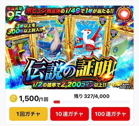 更新したばかりのときは人気カードがまだ引かれていない状態なので、良いカードが残っている可能性が高くなっています。