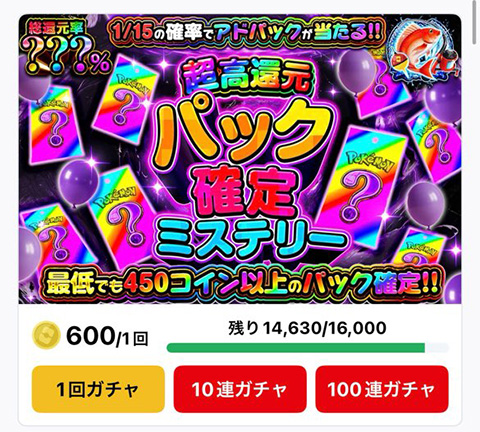 | 引いたガチャ | 超還元パック確定ミステリー | |