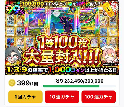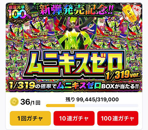 しかし、どちらも還元率が100%、片方は10,000%なのでかなりお得なガチャです。