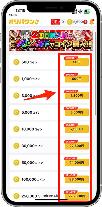 LINEクーポンを使うと、コインの購入額が『8~90%』割引されるのでお得。
