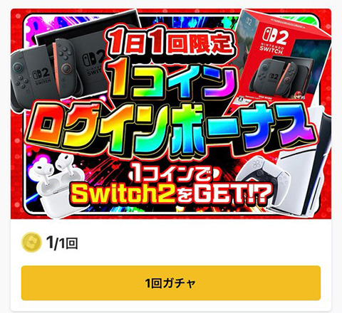 | 引いたガチャ | 新規登録後 1週間限定 アプリ限定ガチャ | 1日1回限定 ログイン ボーナスガチャ |