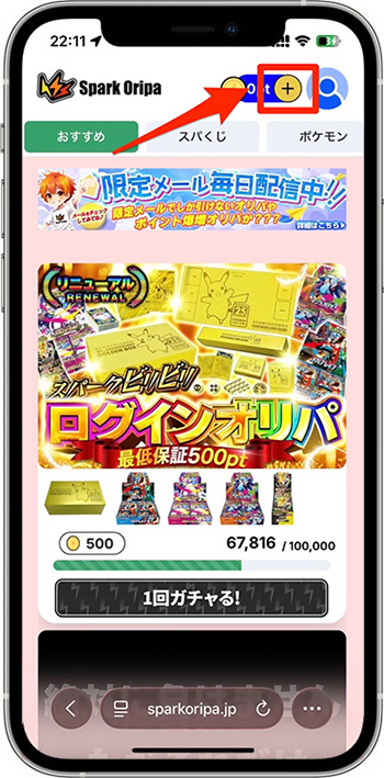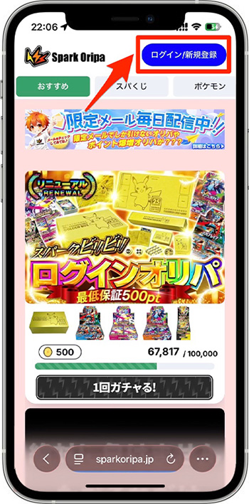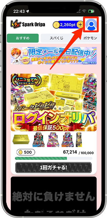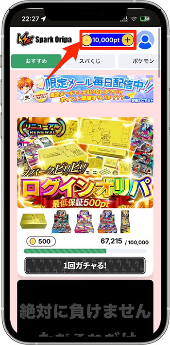 スパークオリパにはログインボーナスとして引ける『ログインオリパ』があり、このオリパは500PTで引きますが、最低保証が『500PT』となっています!