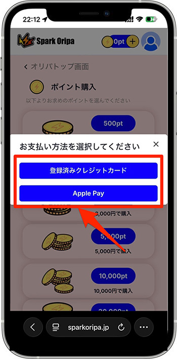 スパークオリパの支払い方法は現時点ではクレカ・Apple Payのみなので、PayPayは使用できません。