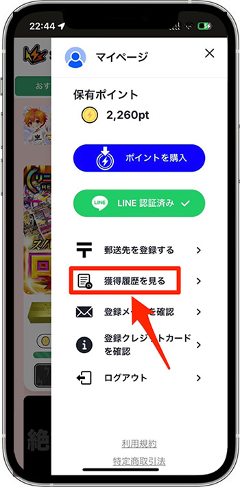 スパークオリパのマイページにある『当選履歴を見る』から確認できます。