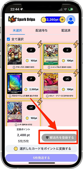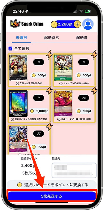 何PTもらえるかはカードによって異なりますが、発送が必須ではないので無駄なくガチャを引け、課金代の節約にもなります。