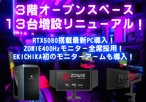 今回増設したスペースには、RTX5080搭載最新PCやZOWIE400Hzモニターを導入👍